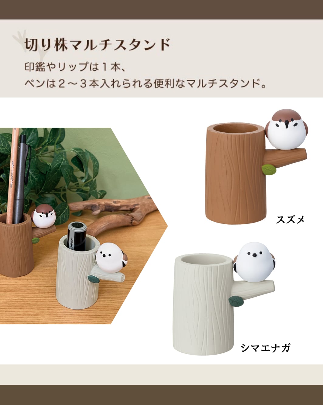 印鑑やリップは1本、ペンは2~3本入れられる便利なマルチスタンド。